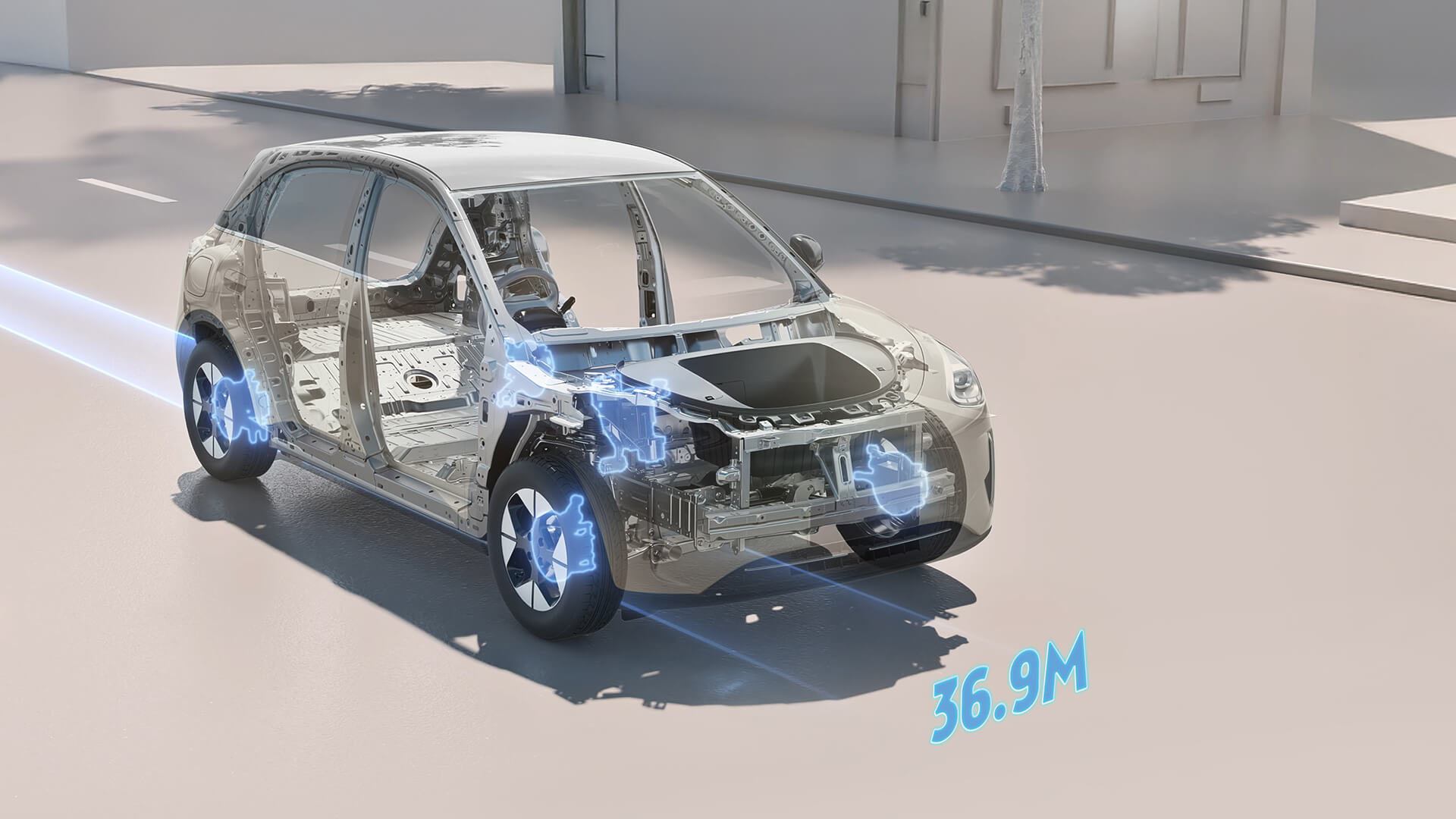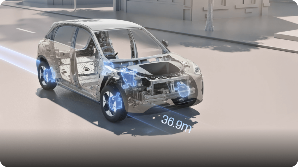 Sistem canggih berfungsi secara senyap di latar belakang, memastikan anda dan penumpang anda selamat dalam badan yang kuat dan tegap.